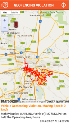 Receive SMS notifications when a vehicle enters or leave a designated Area or Route.